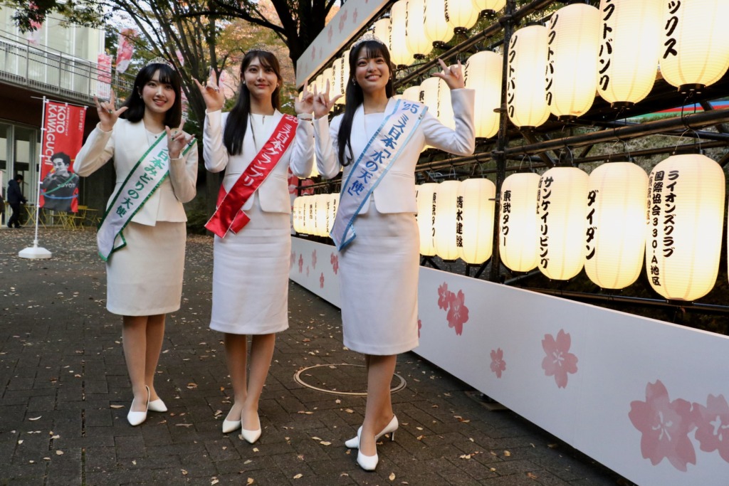 東京2025デフリンピックのスポンサー各社の名前が入った提灯は、夜になるとライトアップされます。