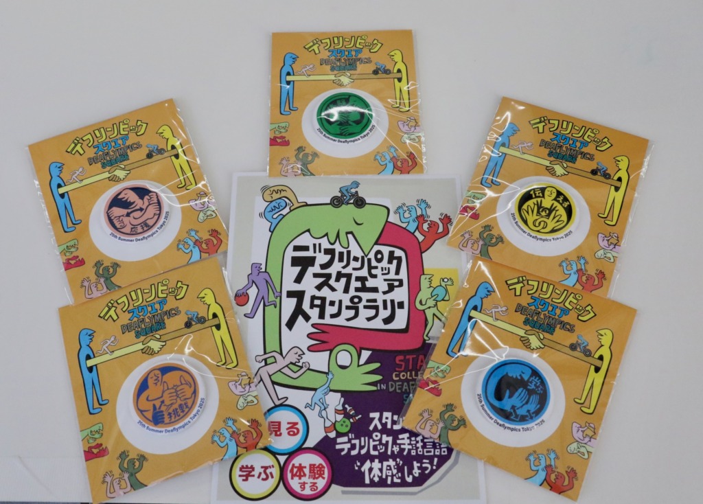 デフリンピックスクエア内に設置されたスタンプを探して集める「スタンプラリー」は完成させるとノベルティーのバッチがプレゼントされます。
