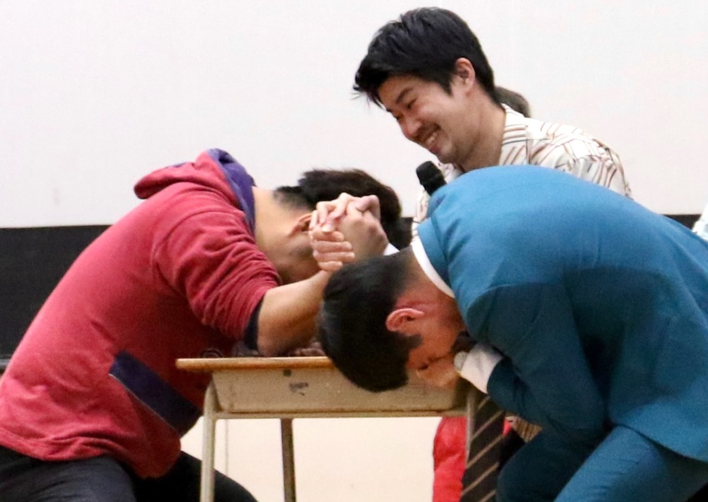 2年生は、「指ずもうで勝負してください!」。かなり白熱した勝負展開となったなか、勝利したのは、2年生でした。