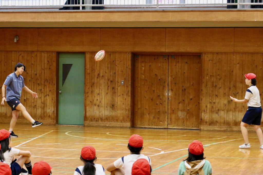 10月26日(日)から女子のラグビーの大会(第36回関東女子ラグビーフットボール大会)が始まる安藤選手や安尾選手も、「女子の試合も見に来てくれるとうれしいです。この機会に興味を持ってくれた子がいたらいっしょにラグビーをしましょう。待っています」と児童たちに伝えました。